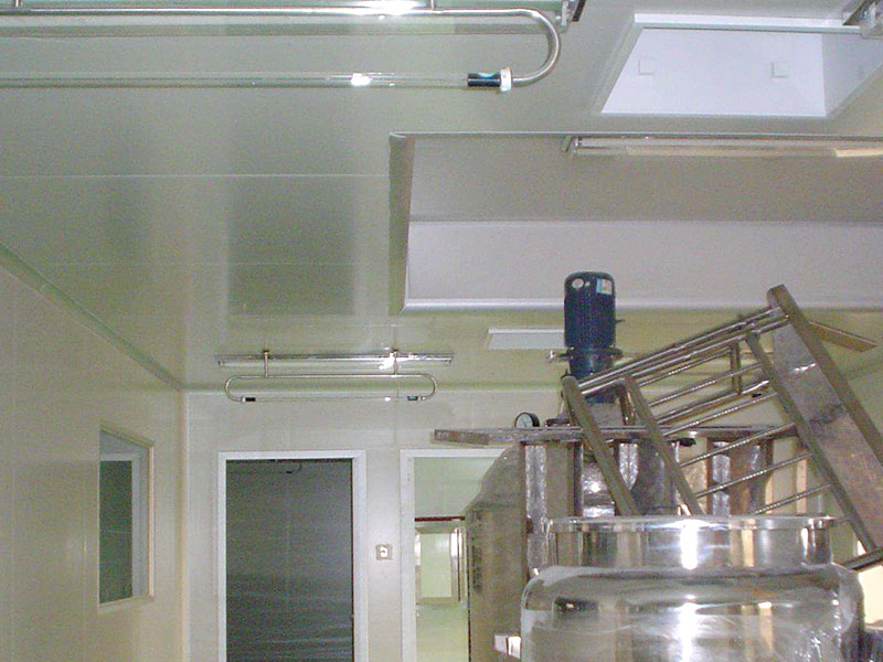 凈化廠房噴頭必須選用上自噴,即灑水噴頭制裝在裝修吊頂隔層內,生產車間內安裝煙感探測器、消防栓、排煙系統出風口,這類方式占多數。灑水噴頭立即明裝在生產車間內,凸起裝修吊頂,不密封性易積塵。灑水噴頭裝在裝飾設計套筒規格內和裝修吊頂相平,套筒規格有專用型的密封,密封性好,套筒規格高寬比難以一致,外型感略差。